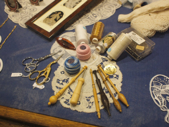 この木製のボビンと言う道具を使ってレースを織って行きます。