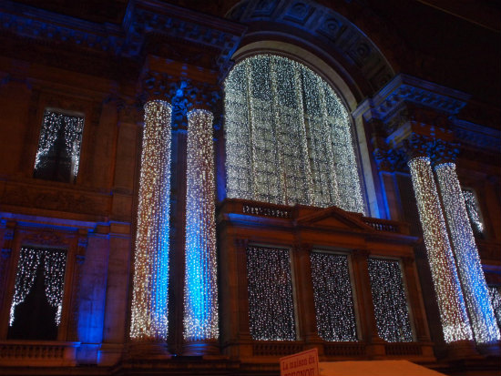 するとグランプラスに音楽が流れ始め、キラキラと色とりどりの光が溢れ出しました!