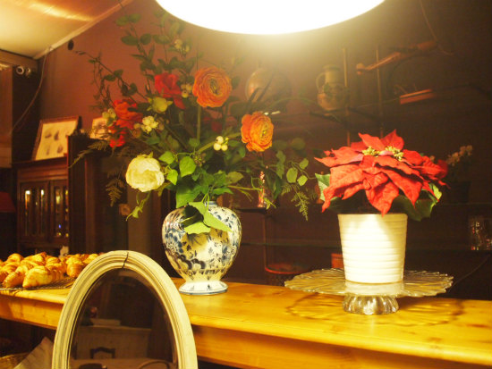 ポインセチアに、なんだか洋画っぽい花瓶